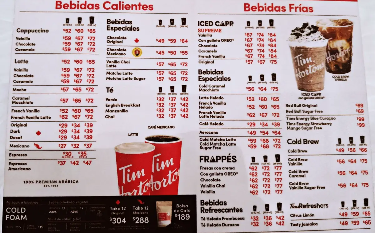 Precios y promociones que maneja Tim Hortons